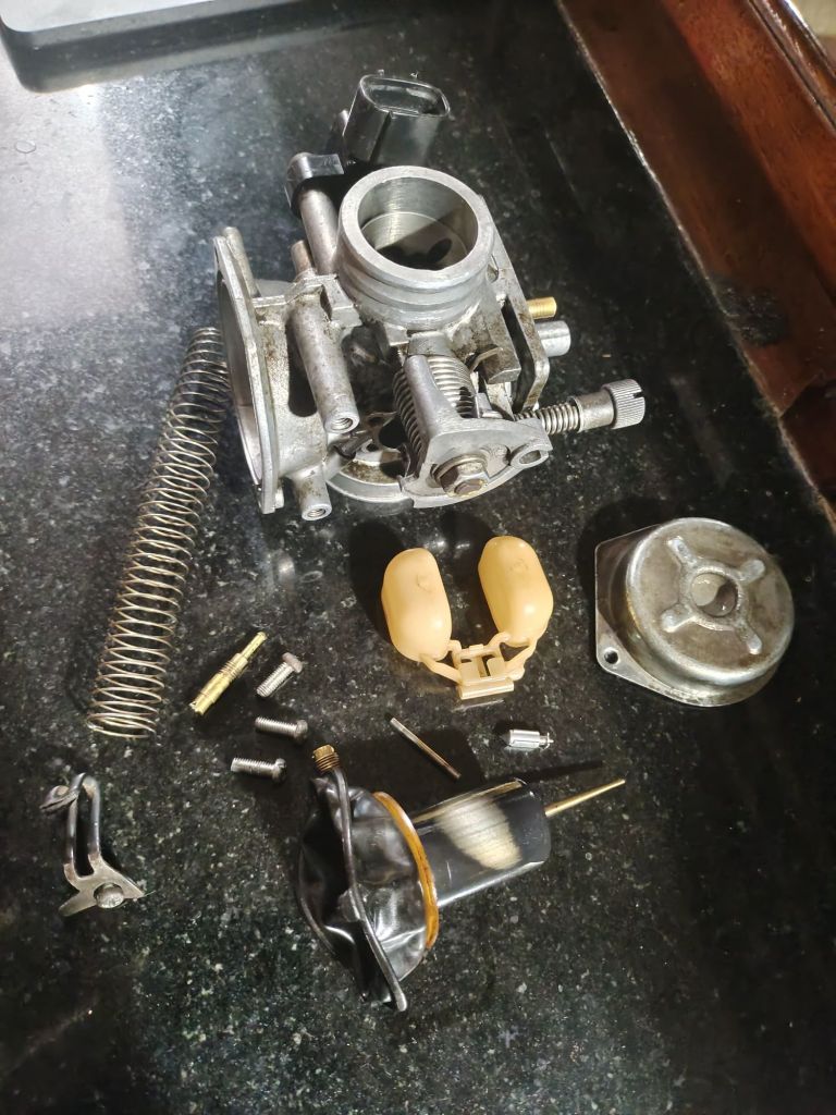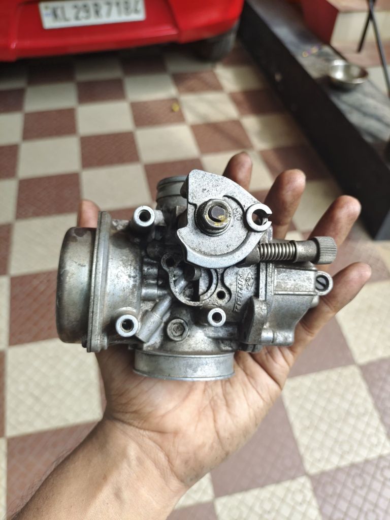 The carburetor we had was fairly old and blackened, so loads of petrol and WD40 spray were sacrificed to get back the shine of the carburetor body.